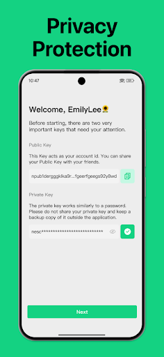 • Anonymous registration: Users log in with a special private key, no phone number or email required.